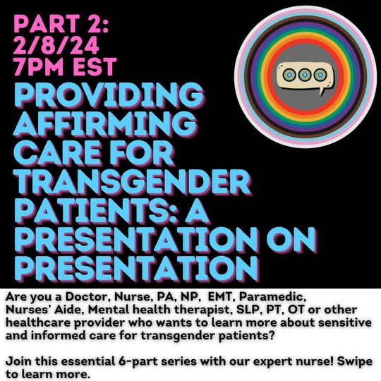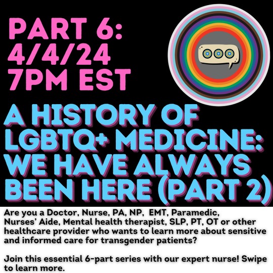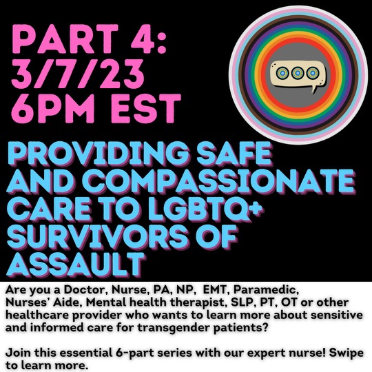 Whether working in an outpatient, hospital, or community setting, healthcare workers are charged with caring for patients who are LGBTQ+. Studies have shown that LGBTQ+ people tend to have overall worse health outcomes than others. This class discusses definitions for LGBTQ+ identities, reasons disparities in health outcomes exist, and how we can all do our part to provide equal and equitable care for all.